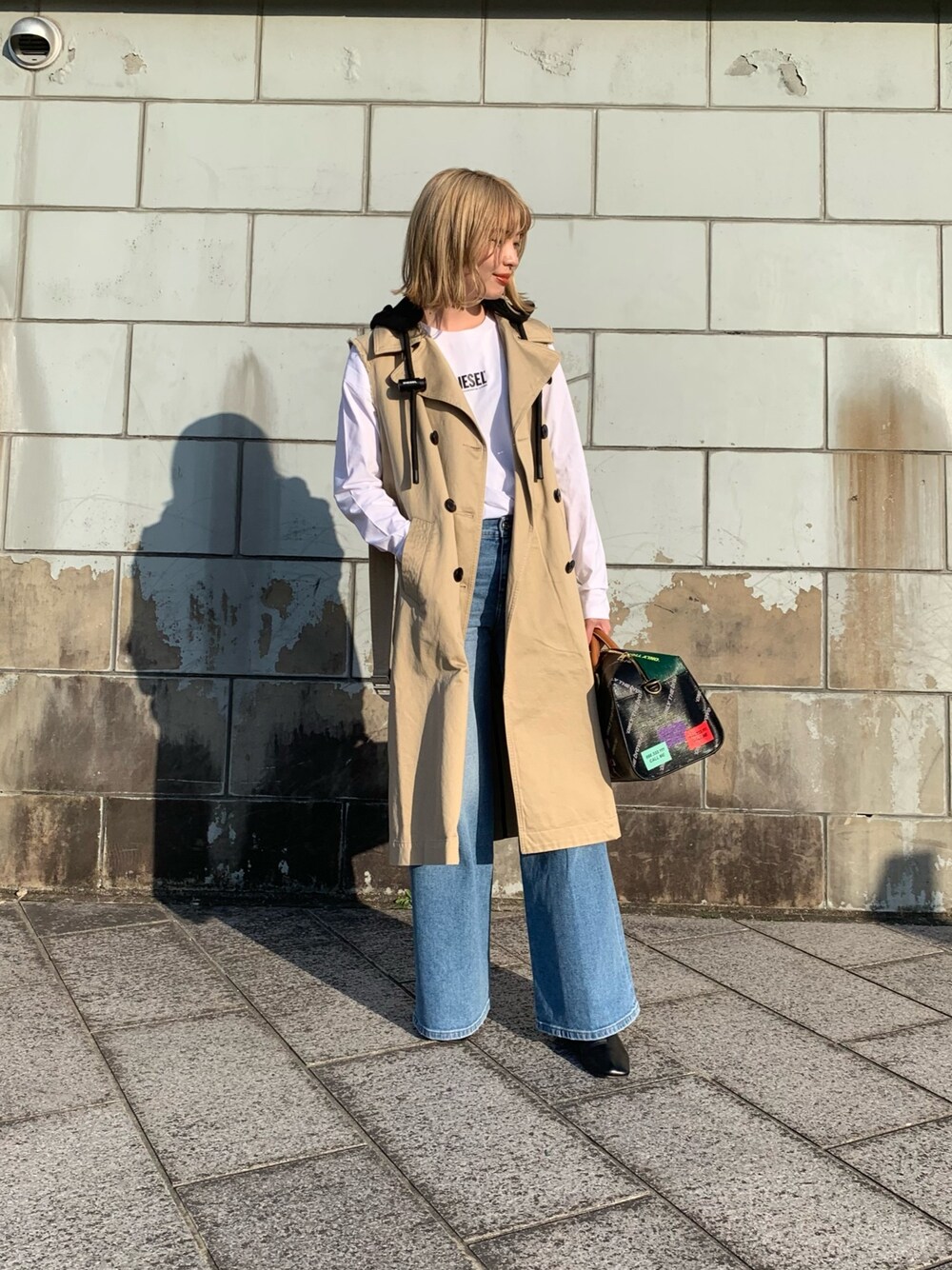 トレンチコートにTシャツを合わせ、綺麗めカジュアルにコーディネートしました!💫