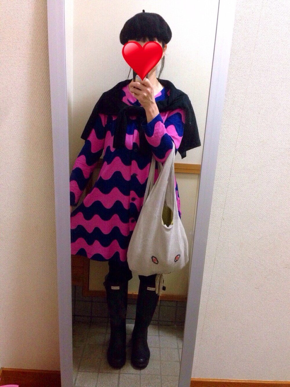 派手〜なワンピには控えめな小物を… 雨の日コーデ