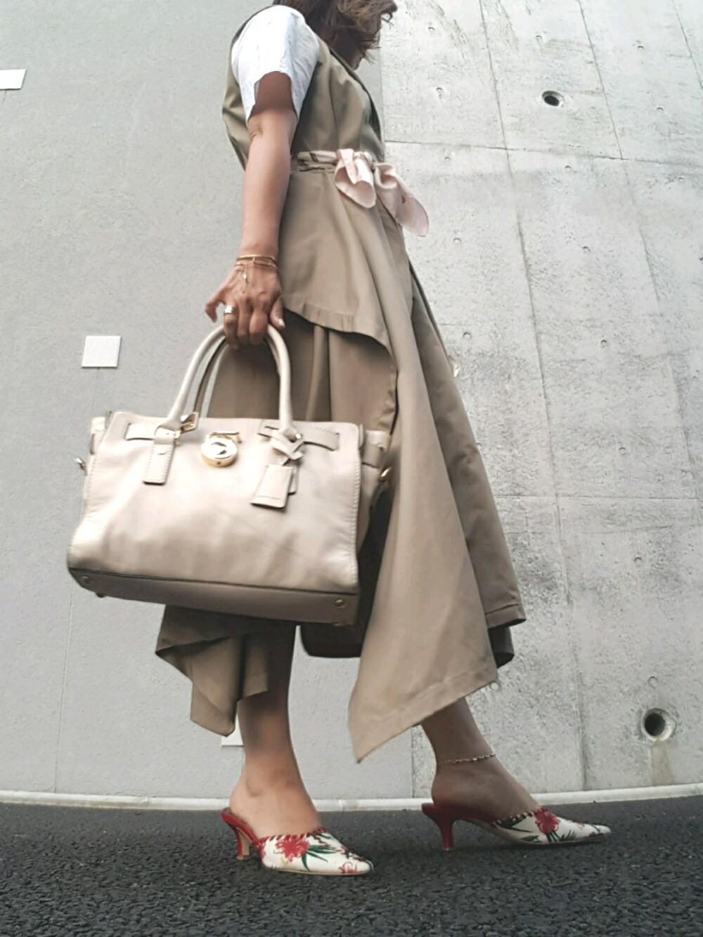 Ameriの変形ワンピに白Tee合わせ♡ 付属ベルト外してスカーフ巻いて 軽い印象に🎵