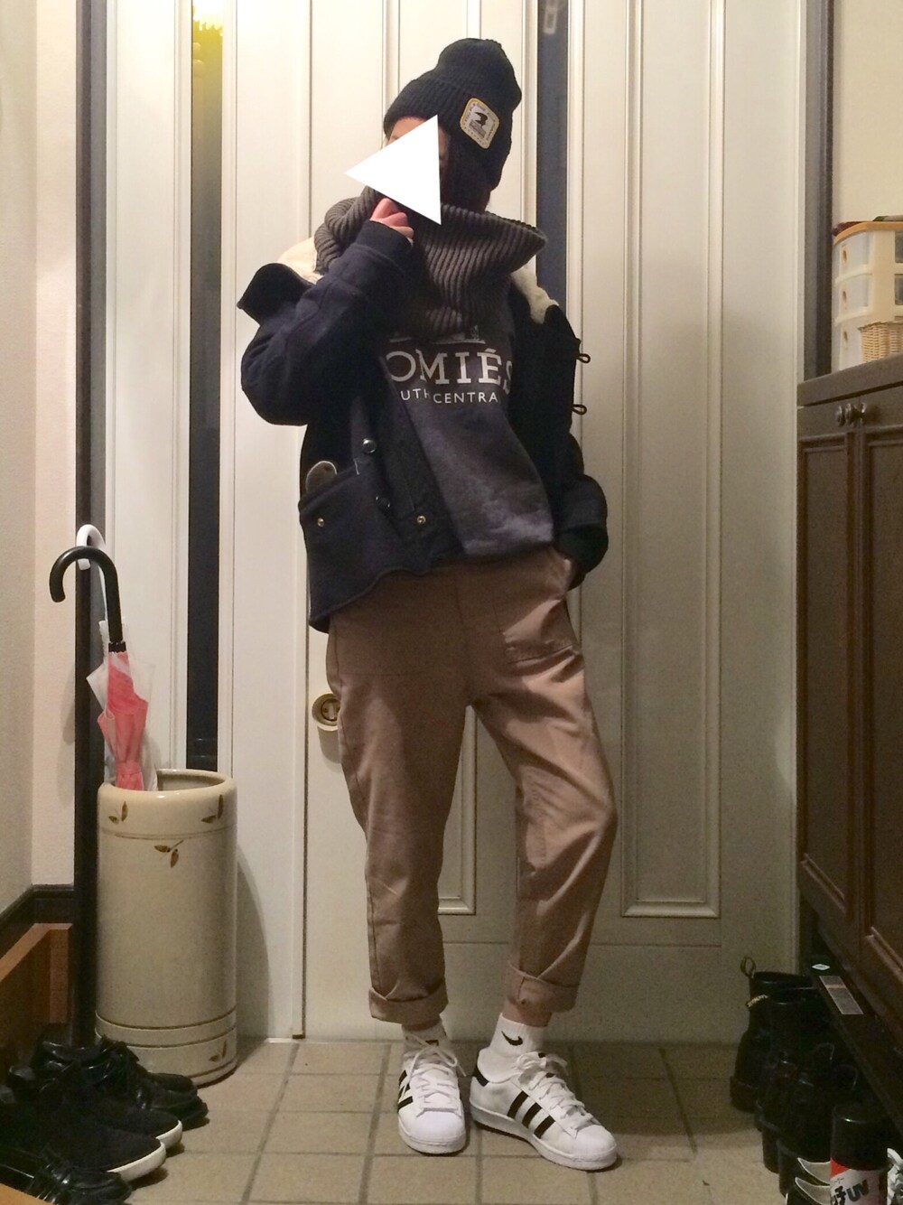 足元でナイキさんとアディダスさんがケンカ中。笑 コートのファーどっかいっちゃった…。