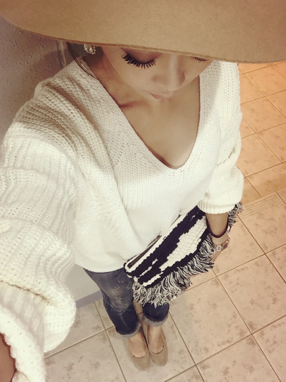 ご飯行ってきました¨̮♡ ざっくり感がかわいいGUのニット♡