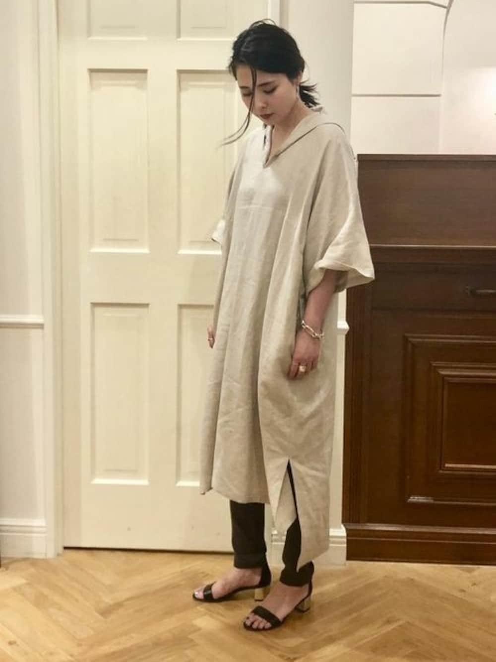 本社 プレスのワンピース「リネンジェバラワンピース」を使ったコーディネート