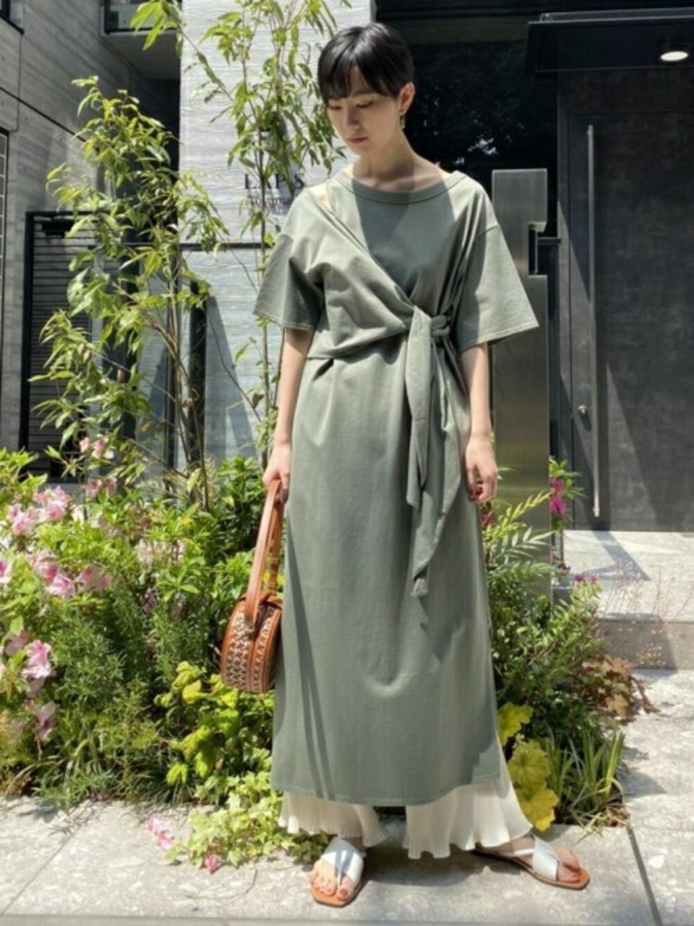 本社 プレスのワンピース「ショルダースリットアシンメトリーワンピース」を使ったコーディネート