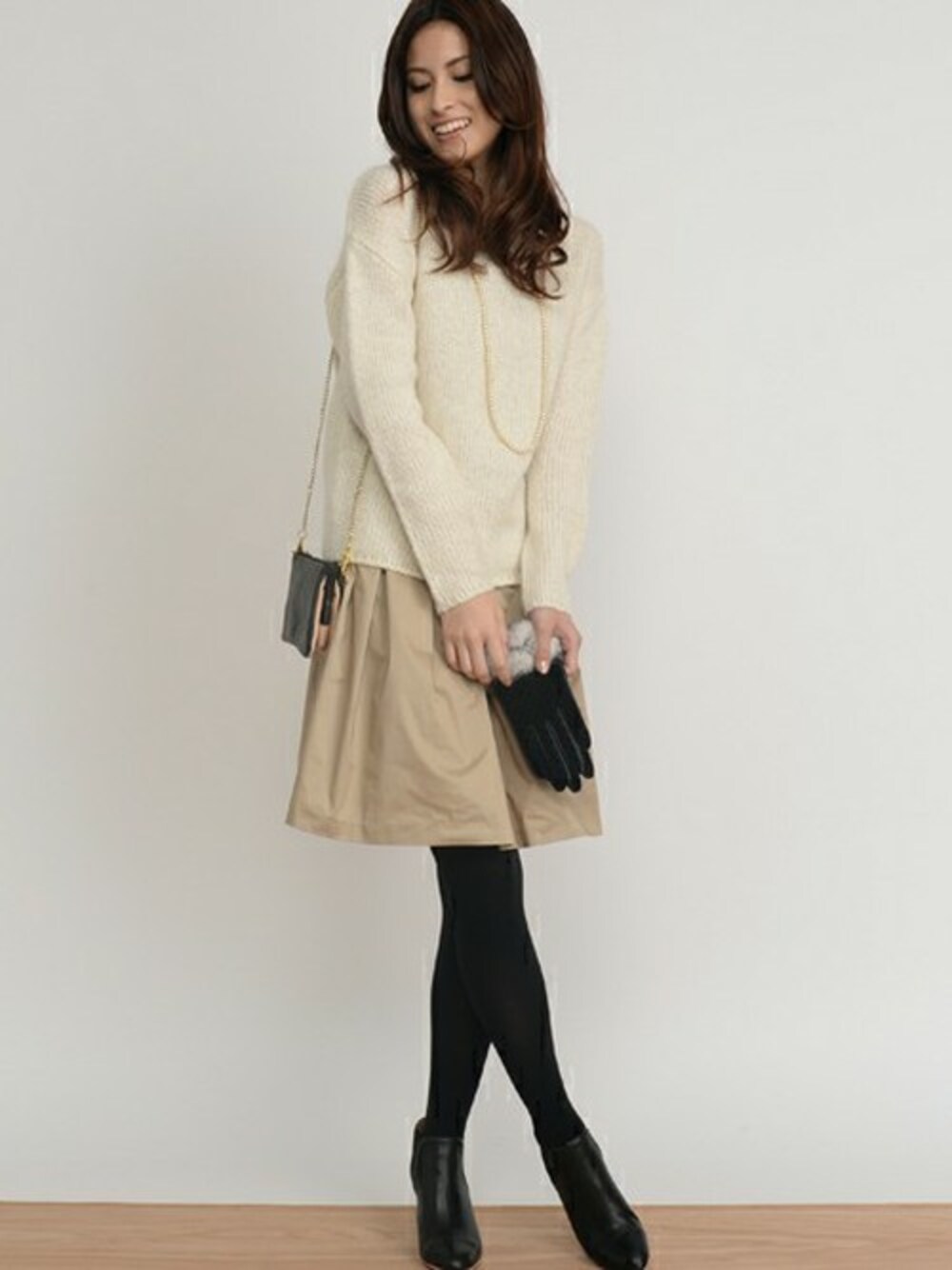 ノースリーブのワンピースにモヘアのプルオーバーを合わせて。タフタのスカートなのでカジュアルダウンも、ドレスアップも可能!