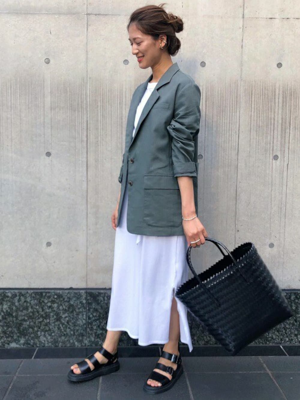 リネンジャケットコーディネート Tシャツ生地のデザインワンピースの上に、羽織りとしてリネンジャケットを合わせました。 ジャケットは程よくくたっとしていて、カジュアルなスタイリングにも使いやすいですよ!! 秋口まで使えるアイテムなので、長いシーズンで着回しできそうです★ 京都ポルタロペマドモアゼル MIHO 167cm