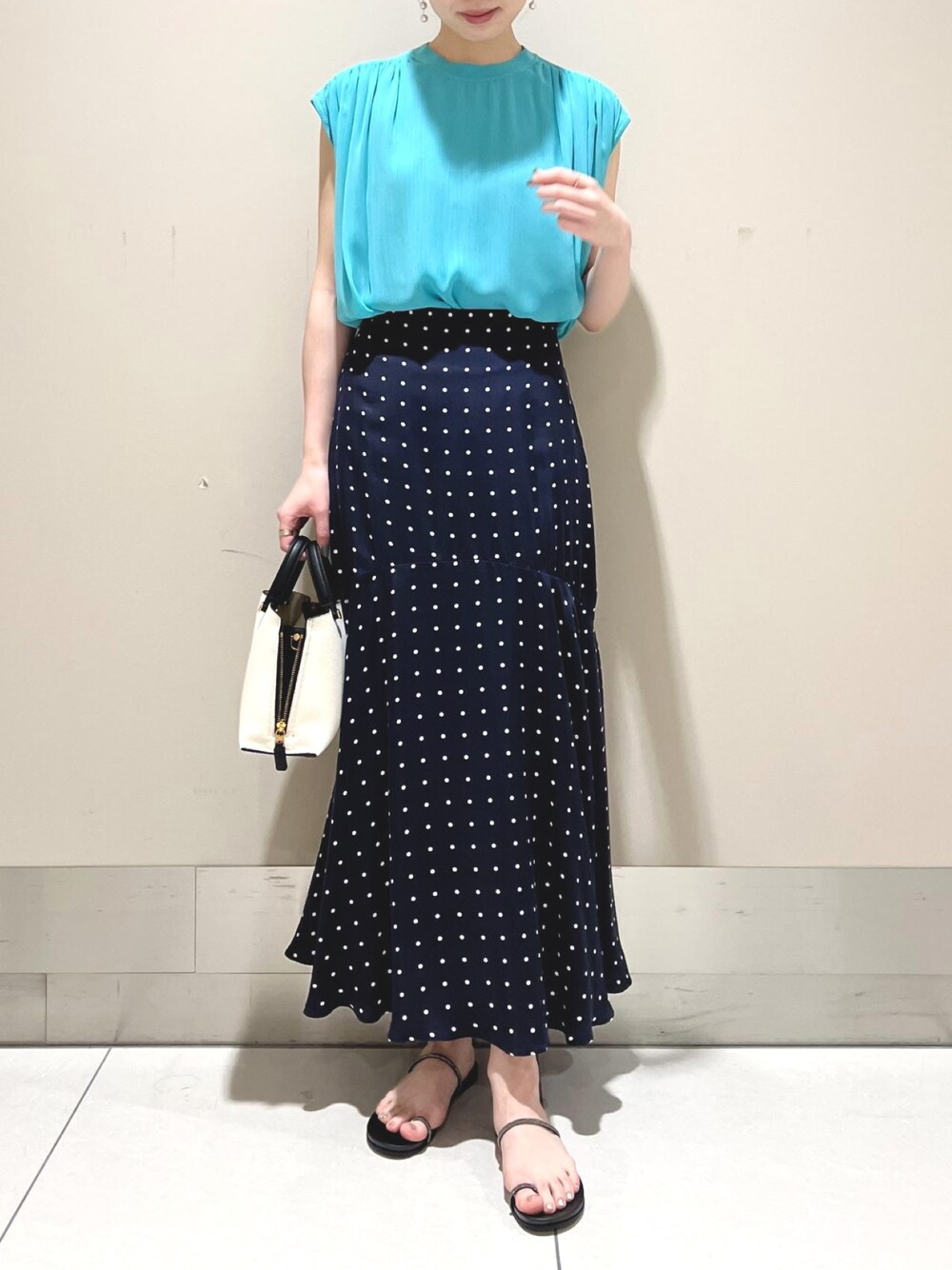 kana / 165cm 爽やかなカラーのトップスは サラッとした夏におすすめの生地感。 袖はフレンチスリーブで 綺麗なシルエットに◎