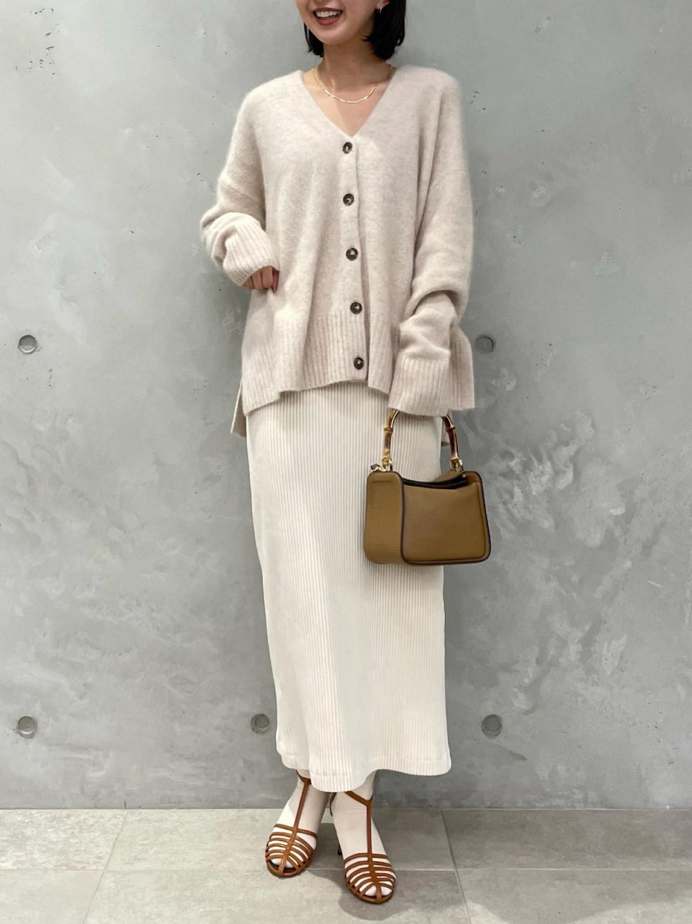 本社 プレスのカーディガン/ボレロ「チャイニーズラクーンウールVネックカーディガン」を使ったコーディネート