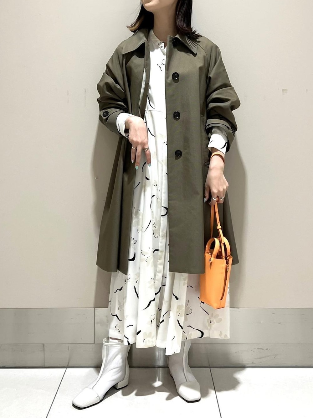 aya/162cm 丈感も長すぎない、気軽に羽織っていただける軽やかなステンカラーコートが登場致しました♪ フェミニンなワンピースに合わせ、甘すぎない大人カジュアルフェミニンコーディネートに仕上げました!! 軽くサラッとした着心地で、足さばきも軽やかなところがおすすめポイントです!! スカートでもパンツでもどちらでも合わせていただけます☺︎