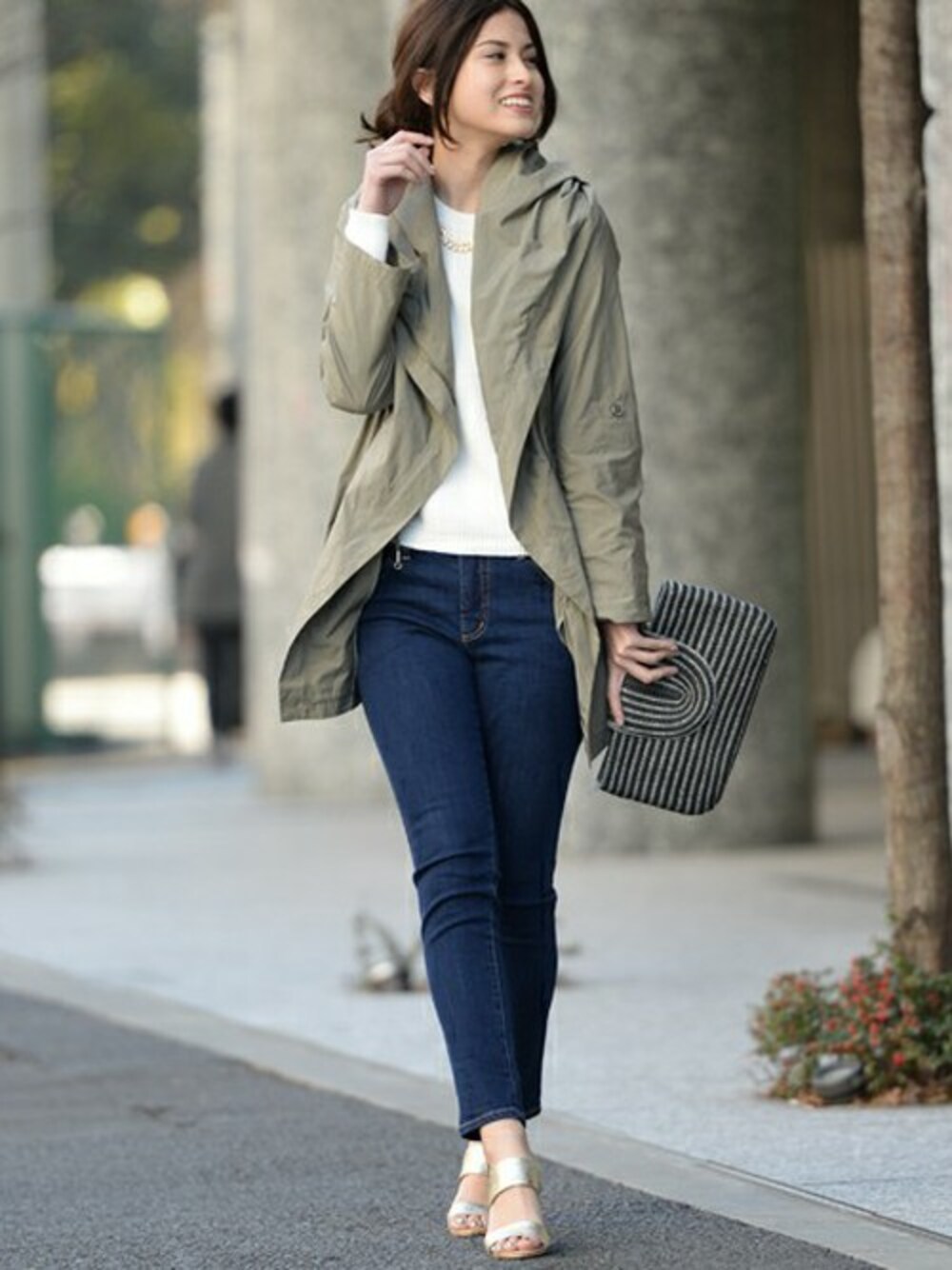 エリが2Wayになるスプリングコート。フードタイプにするもよし、エリを大きくするもより、エレガントにもカジュアルにもどちらのスタイリングにも合わせられちゃいます!