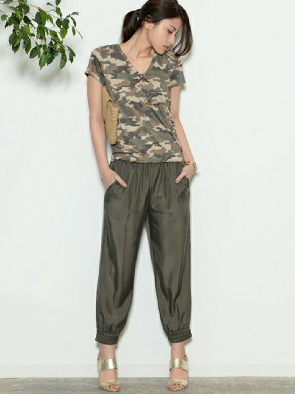 迷彩のTシャツにジャンプパンツを合わせたヘルシーなスタイリング!