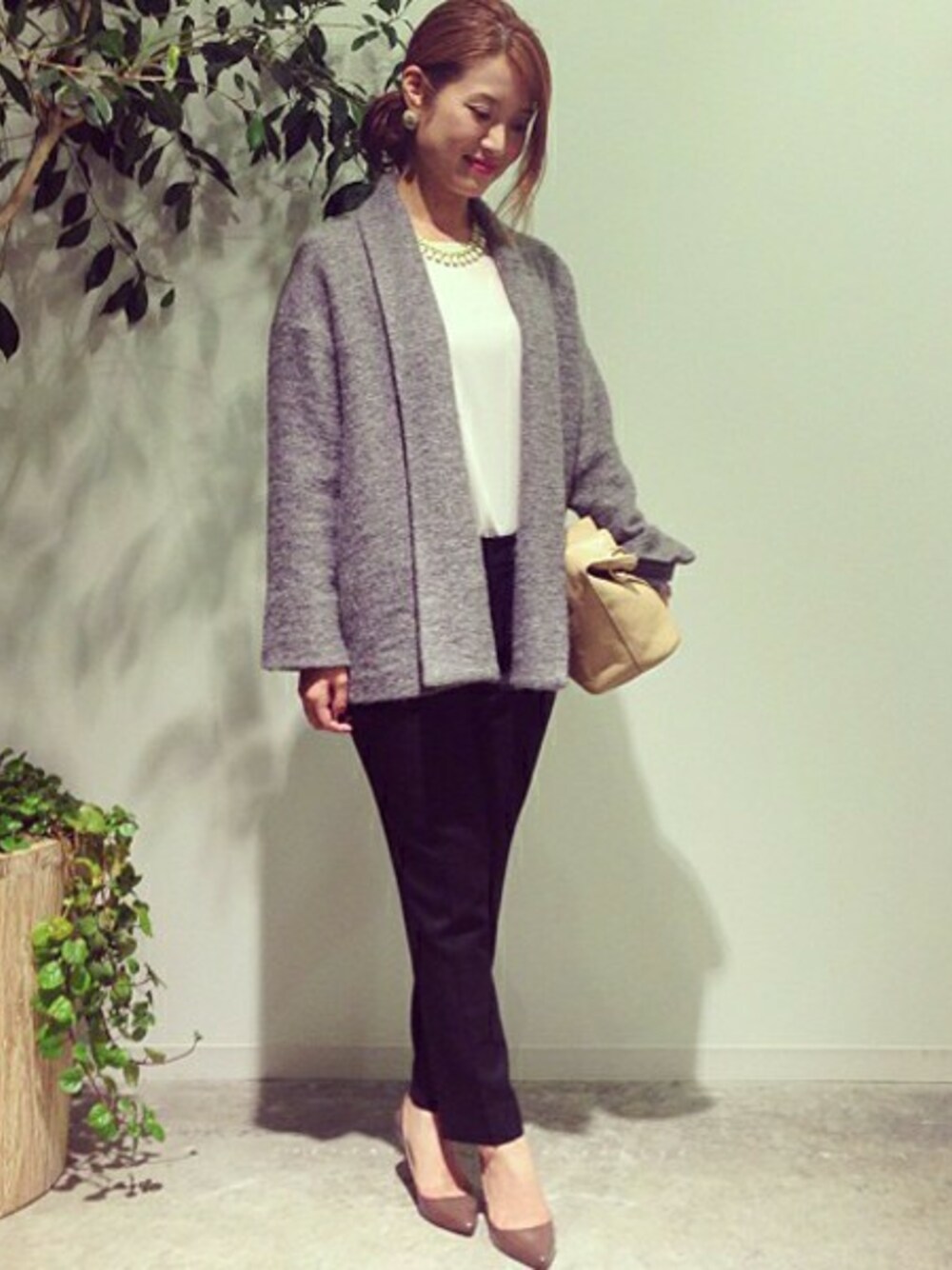 非常に軽いニットコートです。気温が下がり始めているので今、ジャストなコーディネートです♫