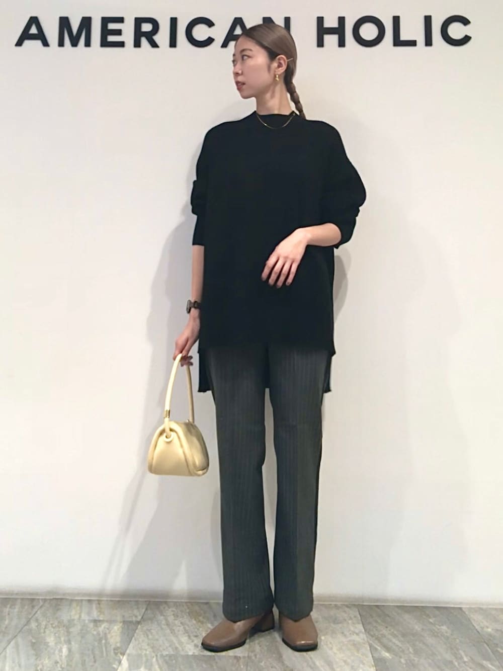前後差のあるゆったりニットに サイドラインのパンツを合わせて スタイルアップ✔︎✔︎ Instagram☟☟ marimarimari_ah