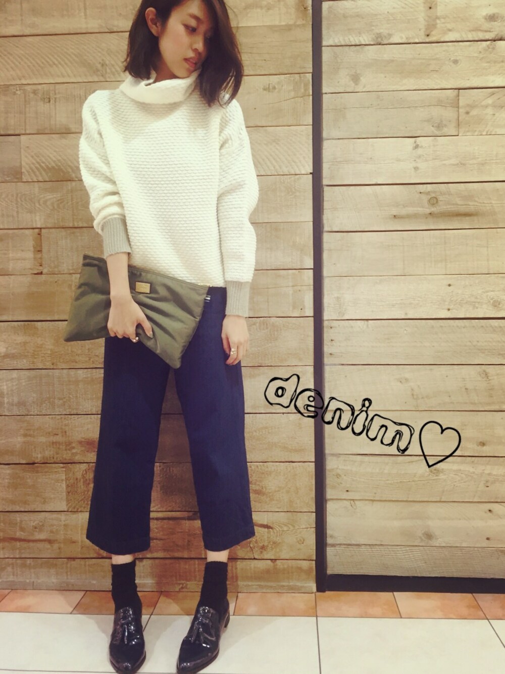 ワイドデニムに ゆったりニットを 合わせるのがお気に入り♡
