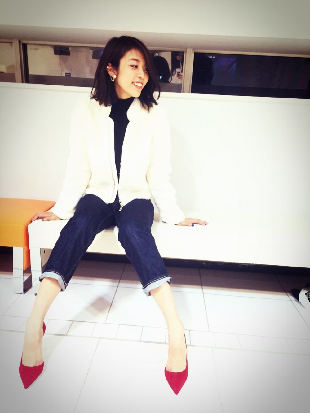 寒い日はファーブルゾンに タートルニットで暖かく☀️ 太めのデニムは、 足首を見せ、ヒール👠合わせで 履くのが好きです!