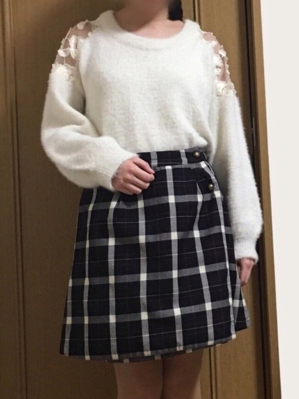 まりんのニット/セーター「ショルダーレースシャギープルオーバー」を使ったコーディネート