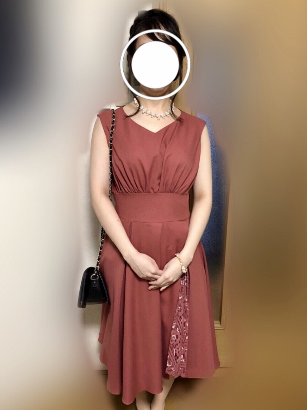 成人式のあと同窓会にはドレスで👗 レースの後ろのリボンがとても可愛い💕