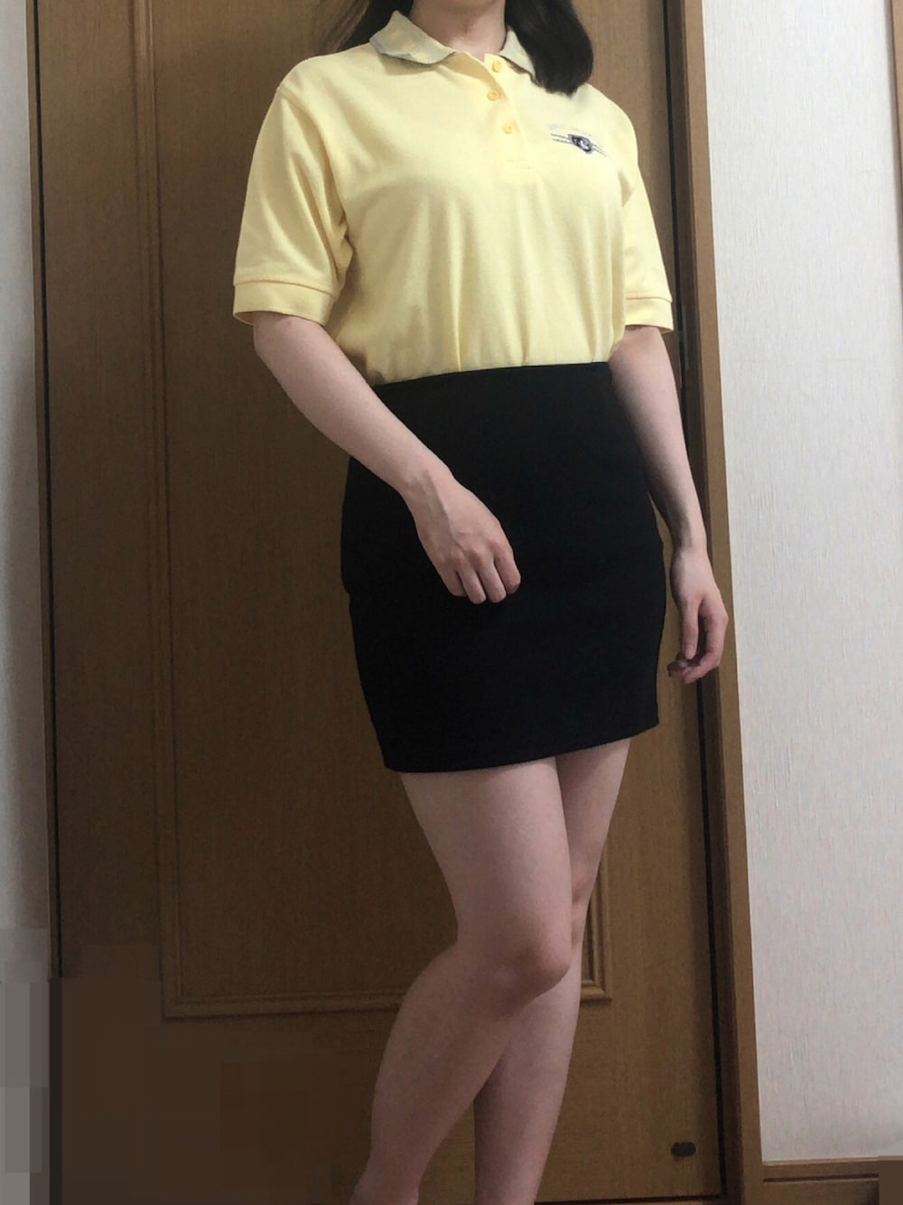 お母さんのお下がりのポロシャツに 韓国のタイトスカートを合わせました!