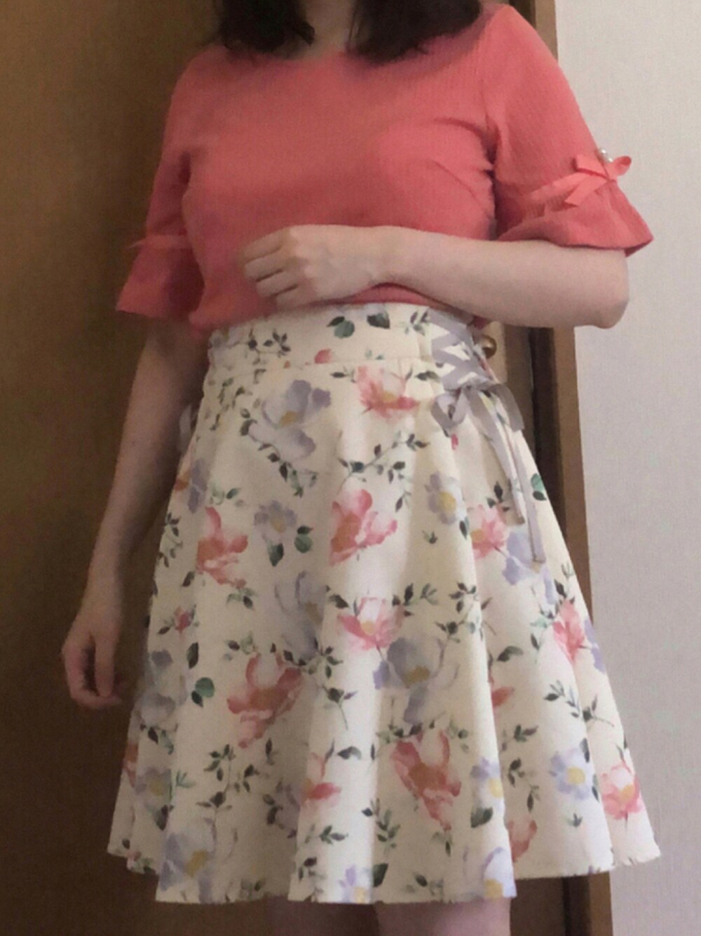 今日はフェミニンコーデにしました🌷 リボンがポイントです。