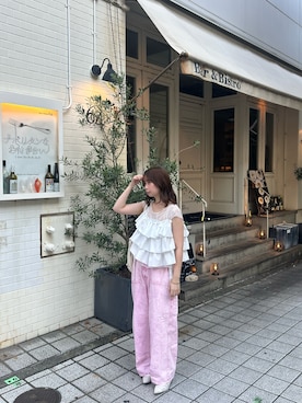 「Andequalのアイテム(デニムパンツ、ピンク系)」を使った、marinaさん(レディース・159cm)の秋コーディネート