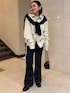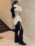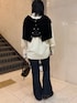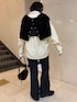 レイヤードがポイントのシャツスタイル。 [tops]着用サイズ:FREE 肩掛けとインナーにしているカーディガンはベロア素材でコンパクトなシルエット。色違いをコーデに組み合わせました。同じに見せない着回し◎です カーディガンメインにボタンを開けてチラッと肌見せもかわいかったです。 [shirt]着用サイズ:FREE ポリエステルとレーヨンで秋冬も活躍する生地。透け感はないです。自宅洗濯可能で、手入れもしやすい。体型カバーしながらスタイルアップができます。 [denim]着用サイズ:PS 今季注目のフレアシルエット。綿素材ではいていくうちに馴染んでは来ますが、細身なシルエットです。インディゴブルーで秋冬らしいカラー合わせができます。 [shoes]着用サイズ:37 23.0cmで37がぴったりです。ヒール4.2cm シンプルな合わせなら、シルエットはシャープでコーデも選ばず使えます。