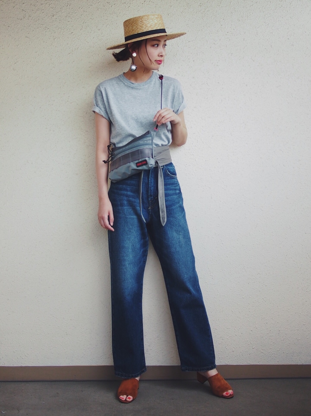フリークストアのハイウエストデニム、形が気に入りすぎて色違いで購入しちゃいました😸🌟 今日は濃い色の方を履きました🎵 Tシャツにカンカン帽でカジュアルコーデ⭐️ 見て頂きありがとうございます😊 インスタ☞m_stylingpage