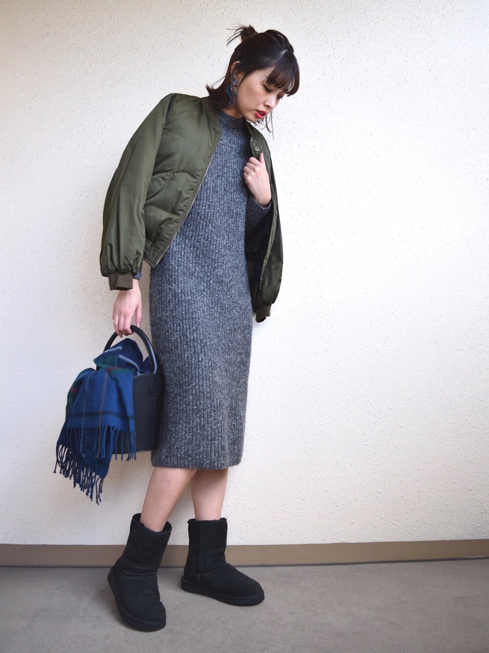 Instagram📱☞m_stylingpage 見て頂きありがとうございます😊 久しぶりにUGG履きました! ニットワンピは去年のGUを着まわしです★
