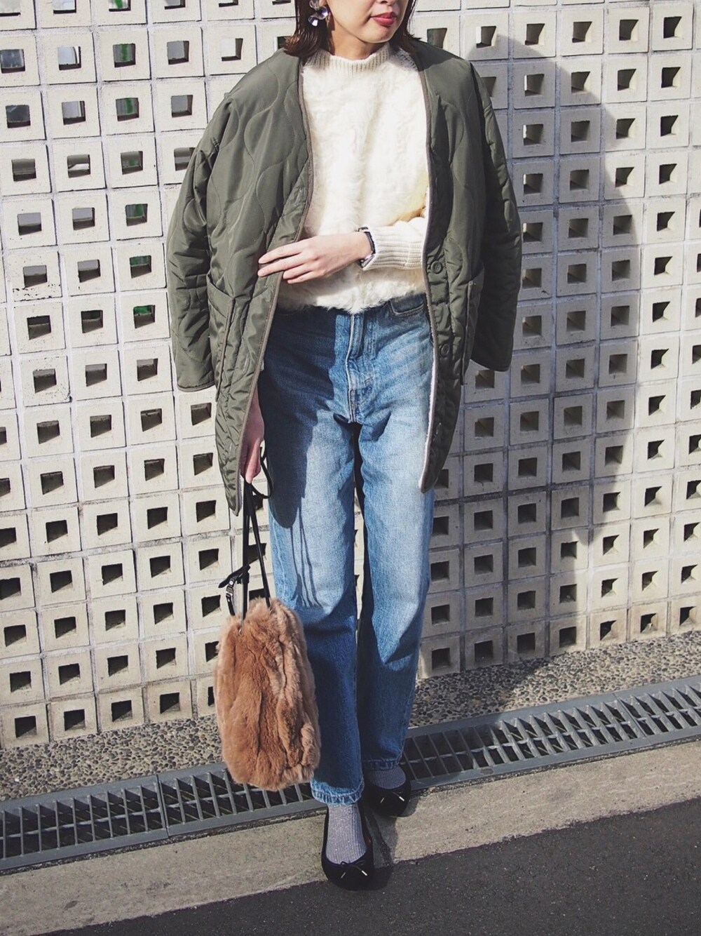 MARIKOのイヤリング「ウェーブメタルイヤリング」を使ったコーディネート