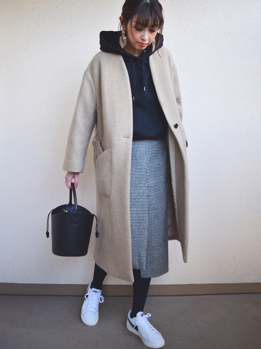 カジュアルにノーカラーコートにパーカーIN⭐️ いつこの寒さマシになるんだろー😩❄️ 見て頂きありがとうございます😊 Instagram📱☞m_stylingpage