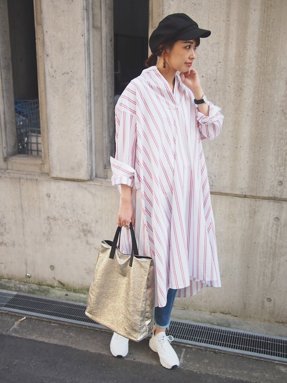 この前購入したジャーナルのシャツワンピ! 赤のストライプ柄がお気に入りです♬ スニーカーはNIKEのエア ハラチ👟 軽くって履きやすい♡ Instagram📲☞m_stylingpage 見て頂きありがとうございます😊