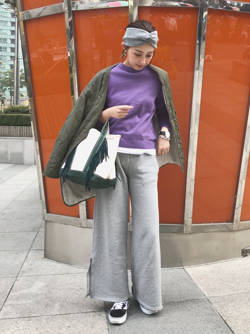この前のコーデ 差し色にパープルのニット! 見て頂きありがとうございます😊 インスタ:m_styling page