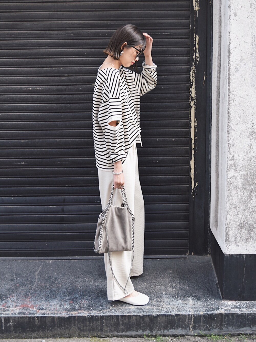 お気に入りのボーダースリット!! シンプルに合わせました 見て頂きありがとうございます♡ instagram:mariko____wear