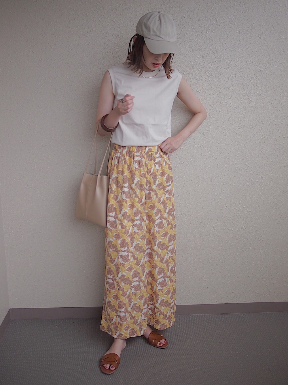 ベージュ×イエローの夏コーデ🌴 もう暑いしゆるコーデが一番ラク♡ 見て頂きありがとうございます♪ Instagram:mariko____wear