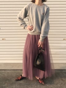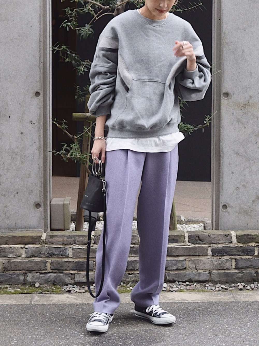 6のパープルのパンツとグレーのスウェットでゆるーくコーデしました!! 見て頂きありがとうございます! instagram→mariko____wear