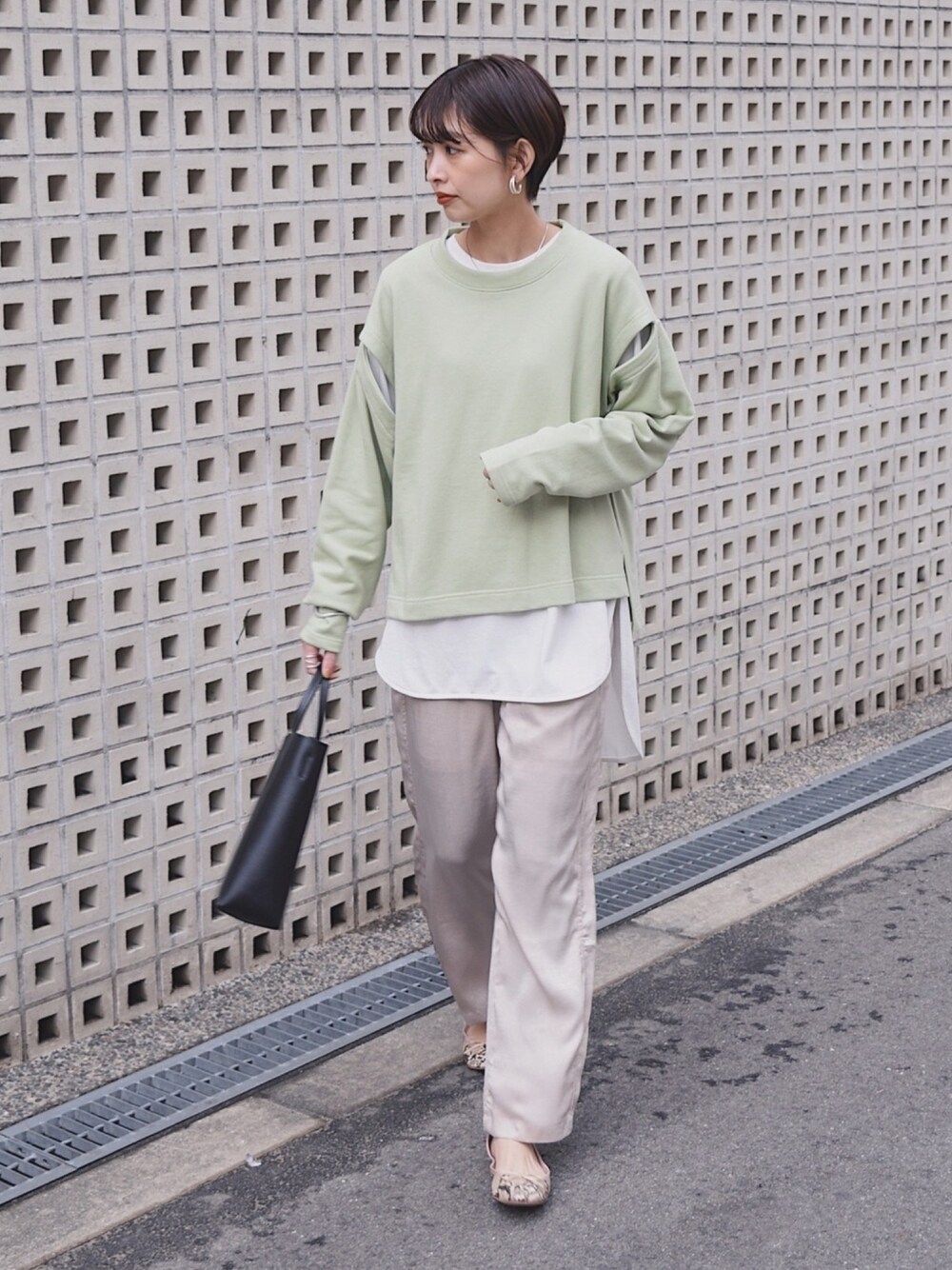 最近ピスタチオとかミントとかグリーン系ばっかり着てる気が、、、。 このトップスもMarientの新作♡ 脇にデザインが入っているので、今はレイヤードコーディネートがオススメです! シンプルになりすぎないよう足元はパイソン👟 見て頂きありがとうございます😊 Instagram➡︎mariko____wear