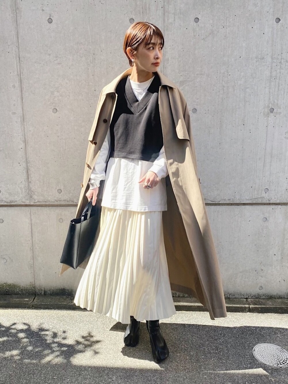 MARIKOのステンカラーコート「BY ドライギャバジンフラップコート ◆」を使ったコーディネート