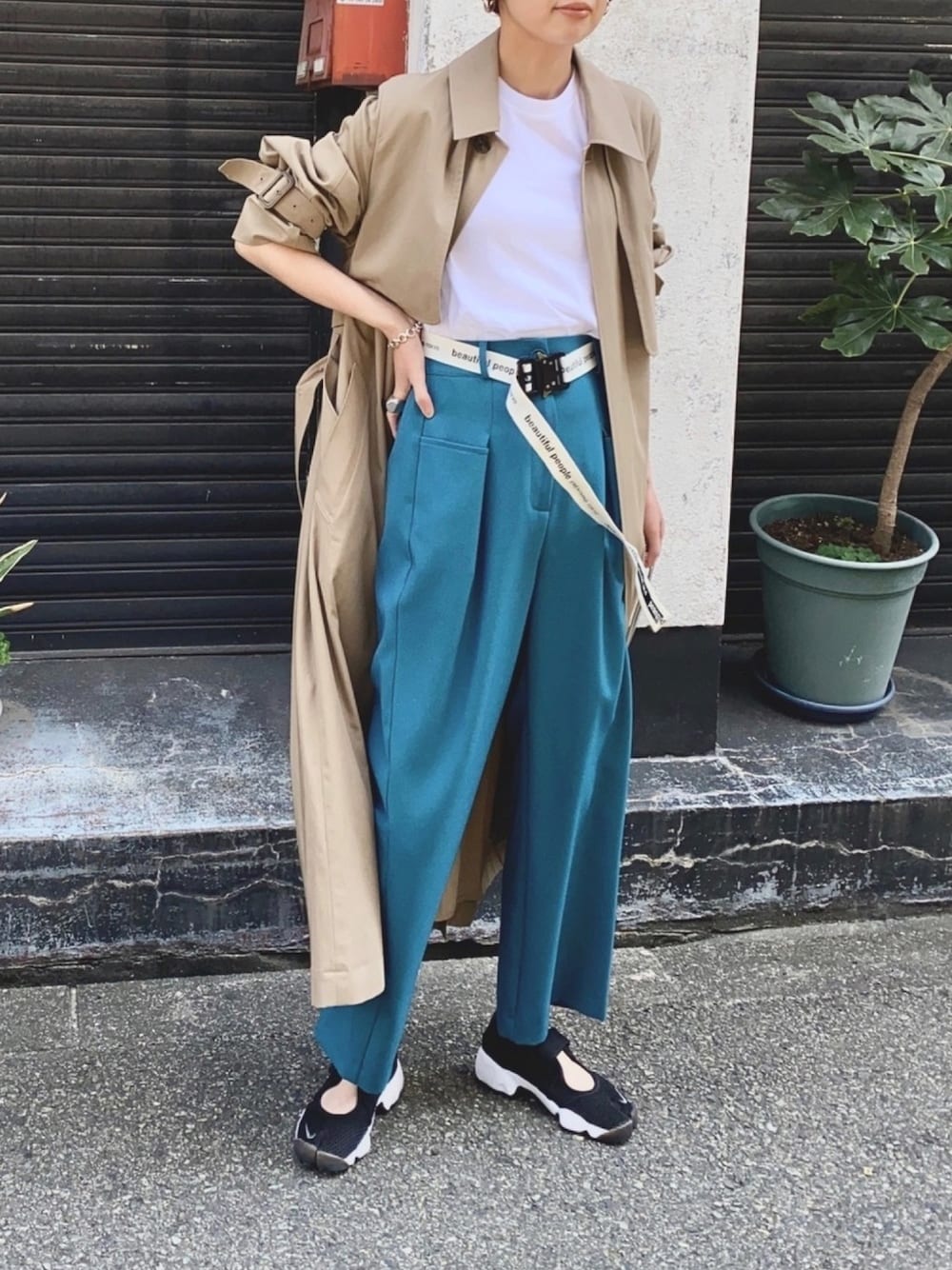 ちょっと前のコーデ😊 トレンチ着てますが、HanesのインナーはスリーブレスのTシャツです! 見て頂きありがとうございます🤎 インスタ @mariko____wear