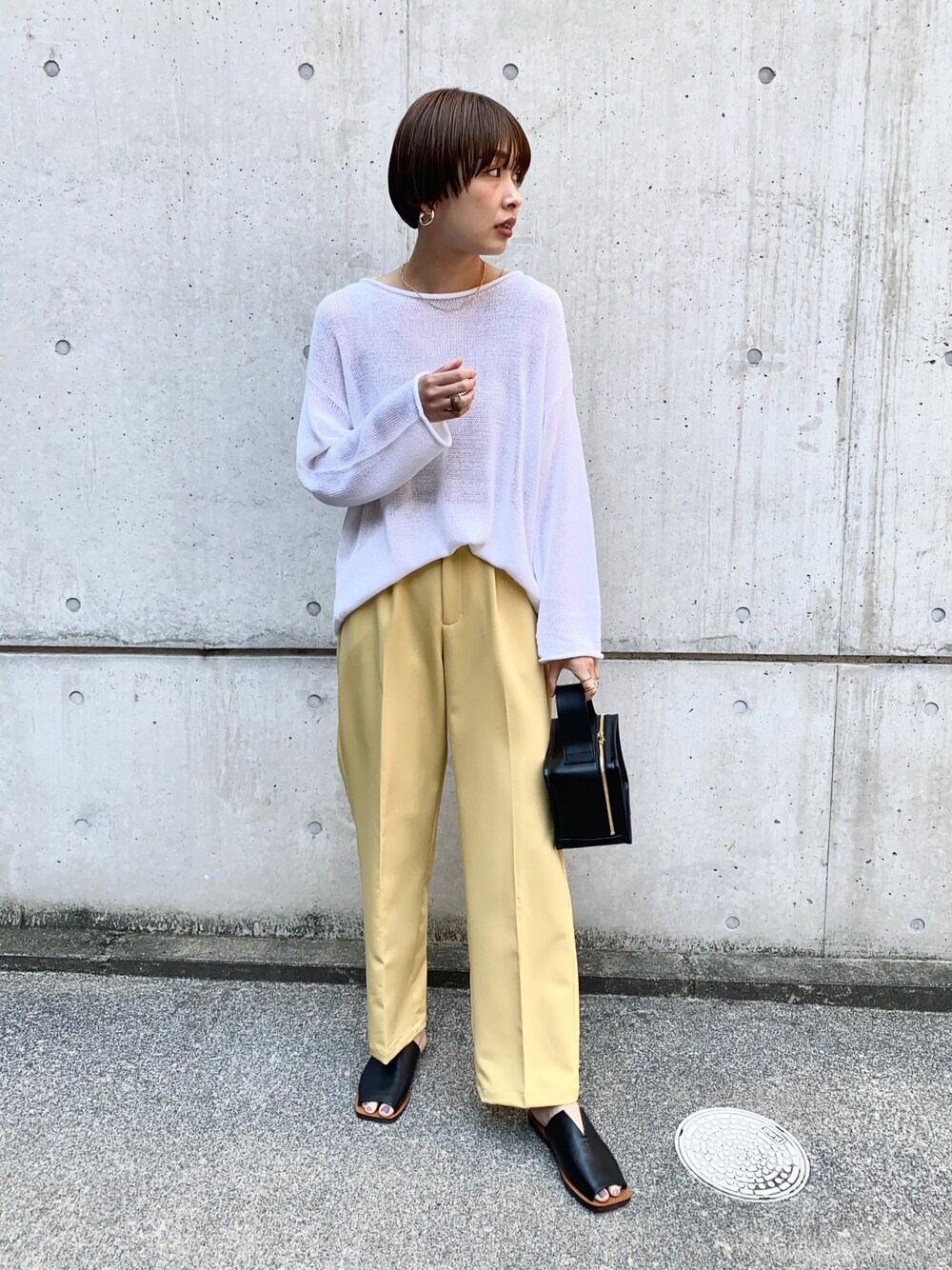 サマーニットとカラーテーパードパンツコーデ パンツはMarientオンラインストアでの取り扱いになります😆 見て頂きありがとうございます🤎 Instagram @mariko____wear