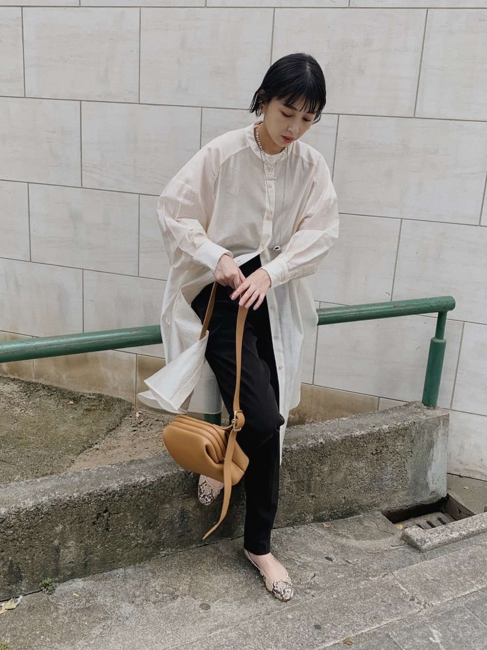 MARIKOのシャツワンピース「シアースタンドカラーシャツワンピ」を使ったコーディネート