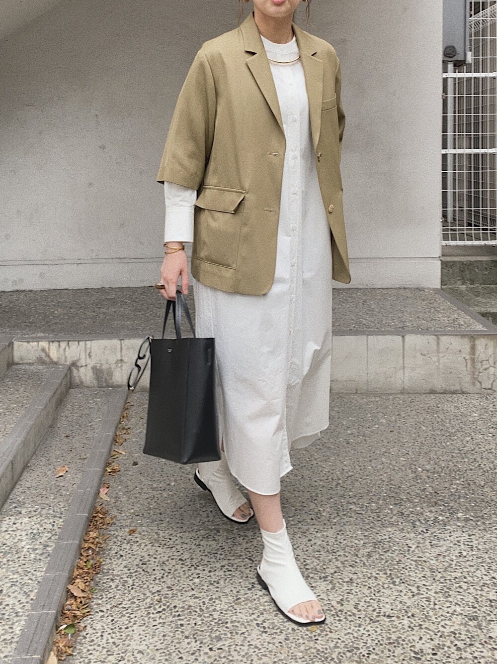 MARIKOのテーラードジャケット「<6(ROKU)>RAYON COTTON SHORT SLEEVE JACKET/ジャケット」を使ったコーディネート