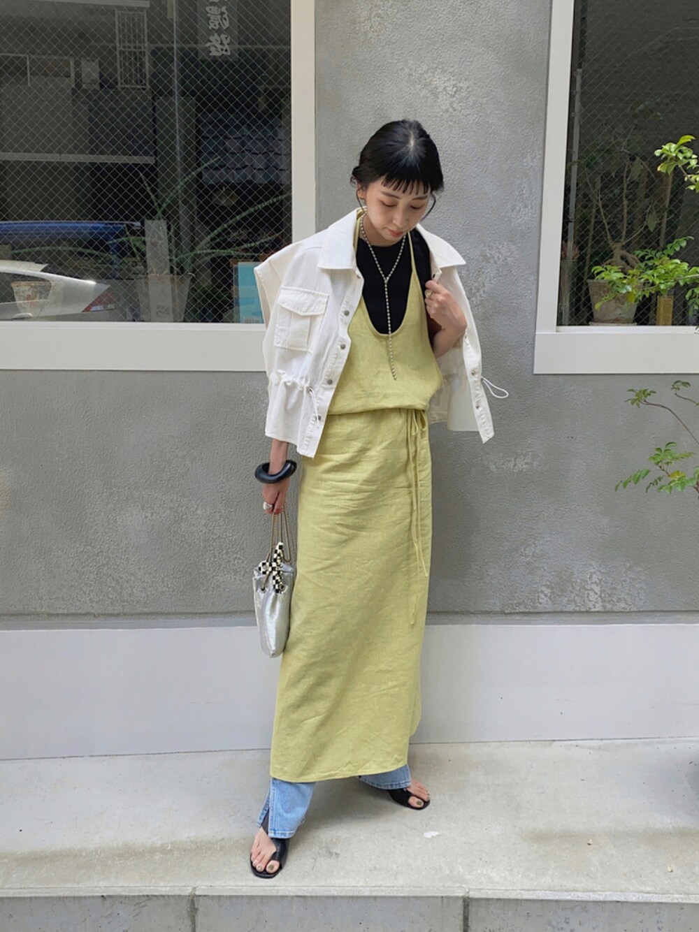 見て頂きありがとうございます😊 MARIENT新作リネンワンピです!! 今年っぽいライムカラーがお気に入り✨ 1枚でもボトム合わせでも🙆♀️ Instagram mariko____wear