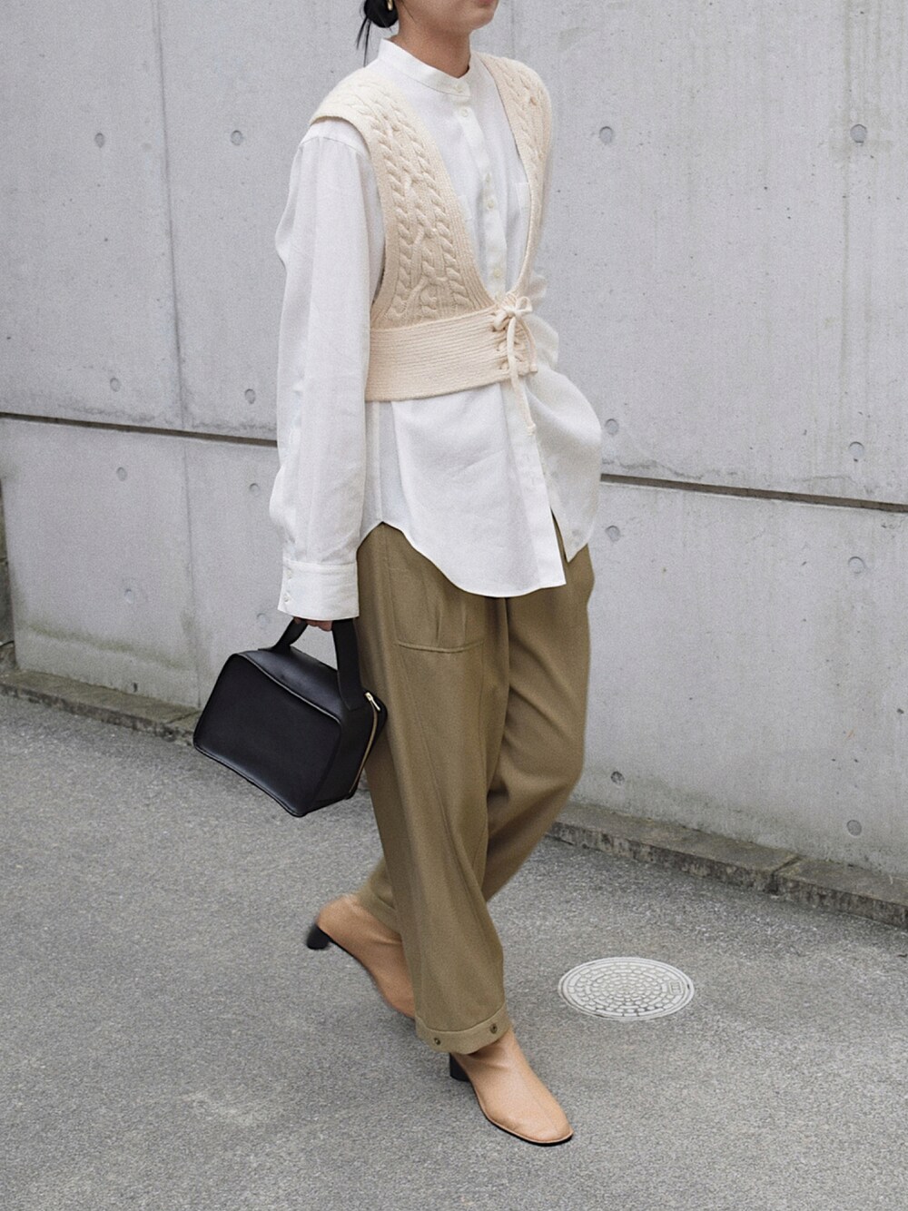 MARIKOのベスト「ケーブルレースアップベスト」を使ったコーディネート