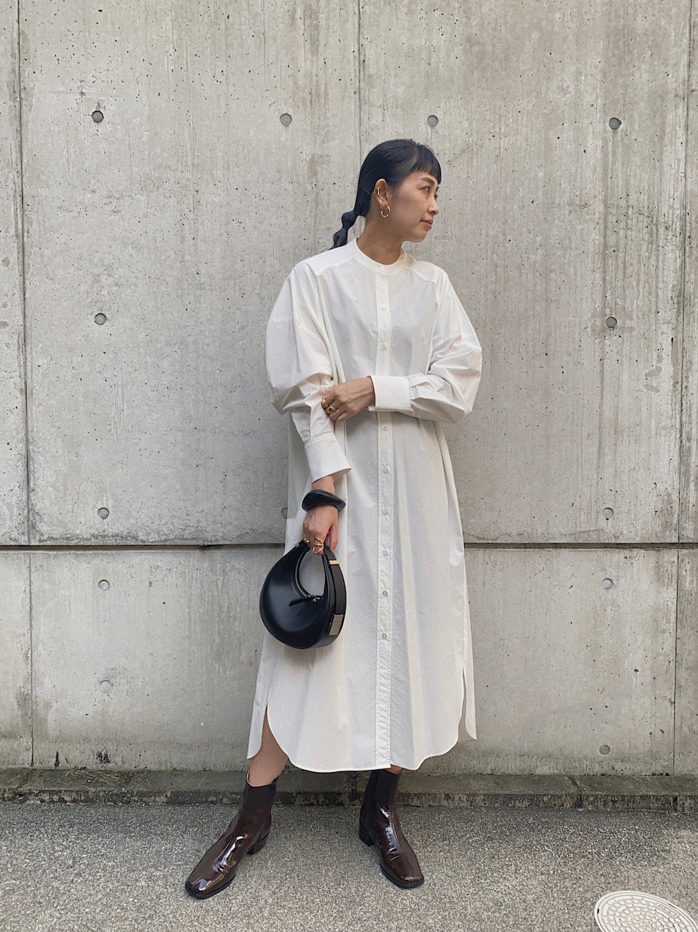 MARIKOのシャツワンピース「タイプライターオーバーシャツOP(ロング丈)」を使ったコーディネート