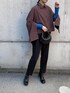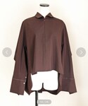 ブラウンカラーのブラウスと ブルーのニットのレイヤード ステッチでシンプルなブラウスだけど、 袖のデザインがモード感を演出してくれます。 見て頂きありがとうございます😊 Instagram 👉mariko____wear