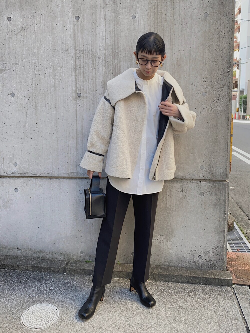 12月🎄🎅 アウターはこの前も着ていた ボアアウターの着回し🐑 インナーは白ブラウスとテーパードで シンプルに 見て頂きありがとうございます😊 Instagram 👉mariko____wear