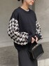 スリーブ部分のチドリ柄がポイントの apres jour mignonのニット🧶 少しタポっとしたゆるさも可愛く 1枚でもレイヤードコーデにも🙆♀️ 見て頂きありがとうございます😊 Instagram 👉mariko____wear