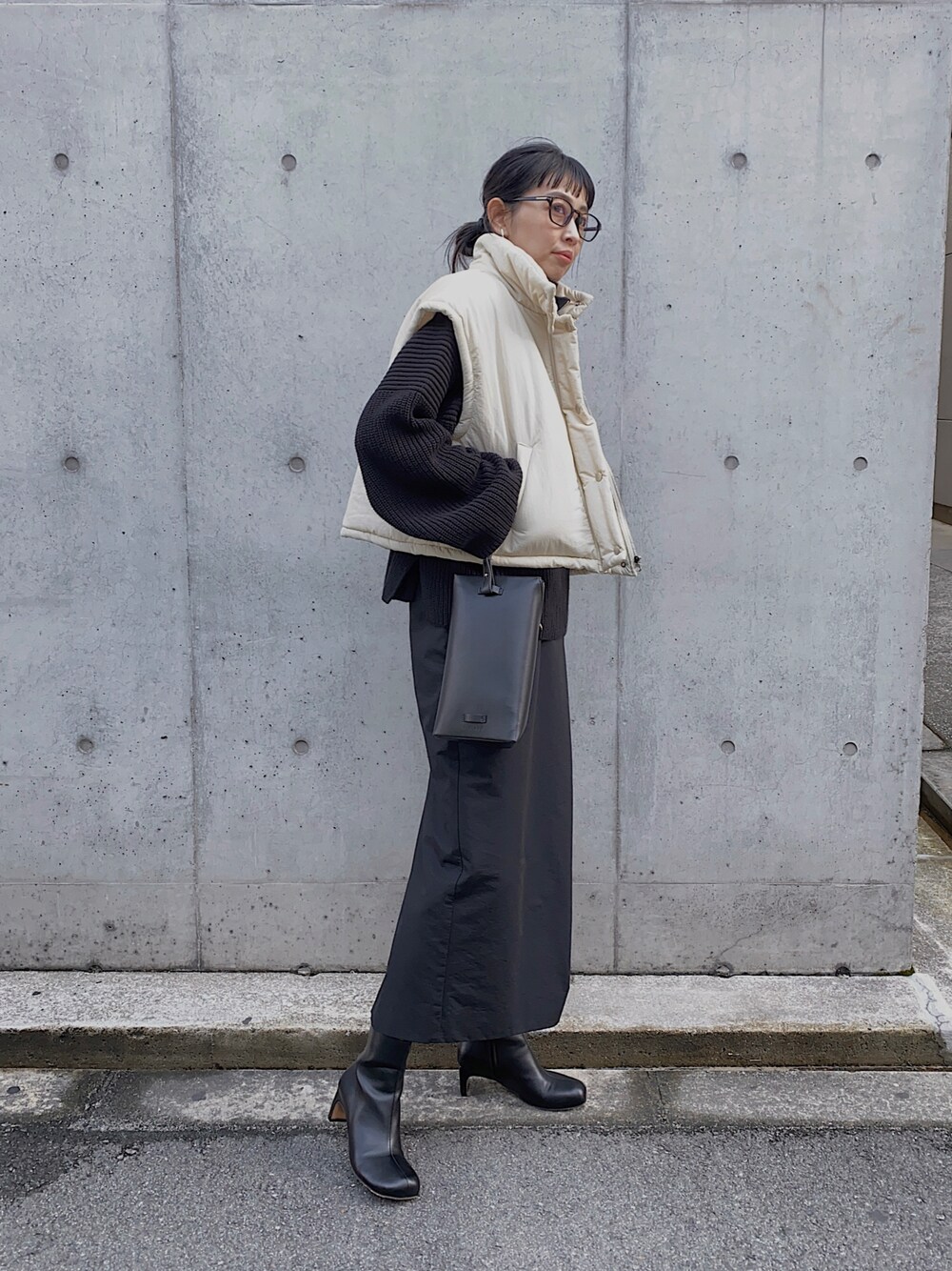 MARIKOのダウンベスト「パディングベスト」を使ったコーディネート