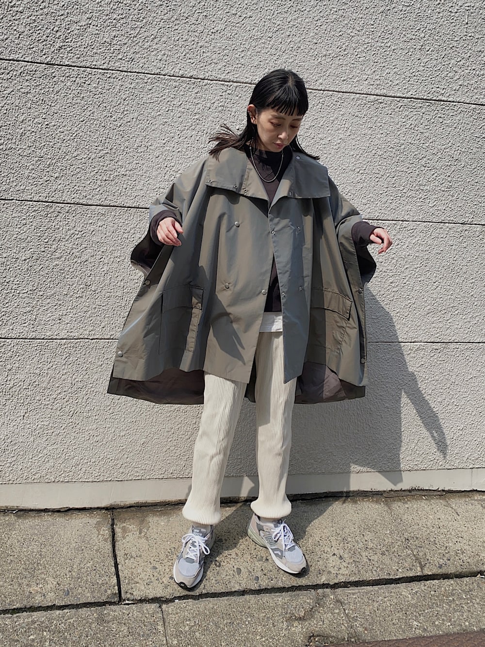 MARIKOのポンチョ「Stand collar poncho」を使ったコーディネート