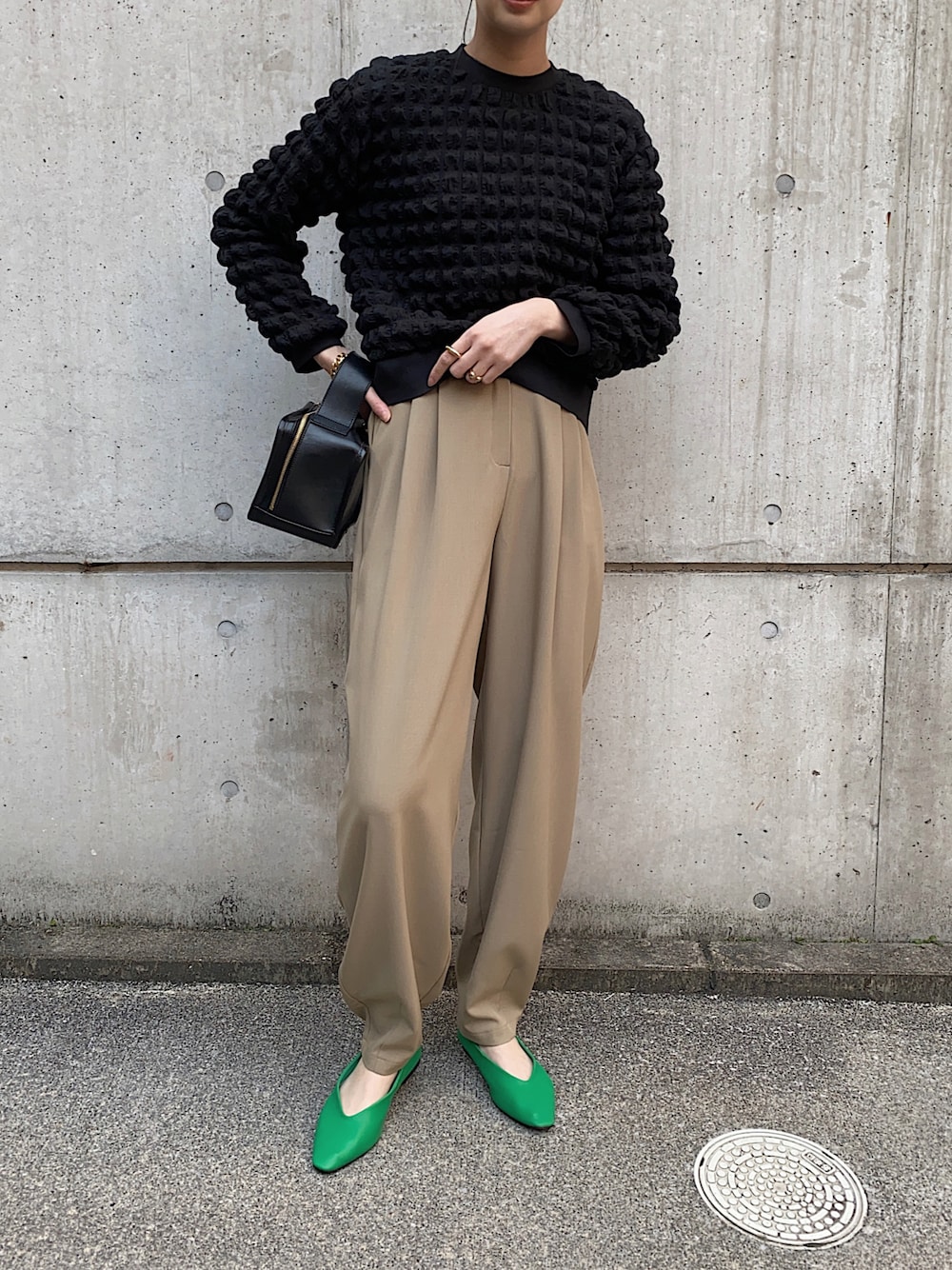 久しぶりにキレイ目コーデ✨ ぽこぽことした生地がポイントのトップス。 短めの丈なのでスタイルアップ効果あり! サロペのインナーとかにも使えるよ😃 見て頂きありがとうございます♪ Instagram 👉mariko____wear