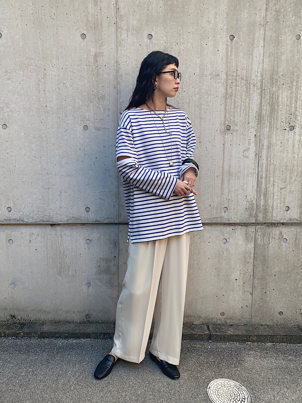 MARIKOのTシャツ/カットソー「ボーダースリットロンTEE」を使ったコーディネート