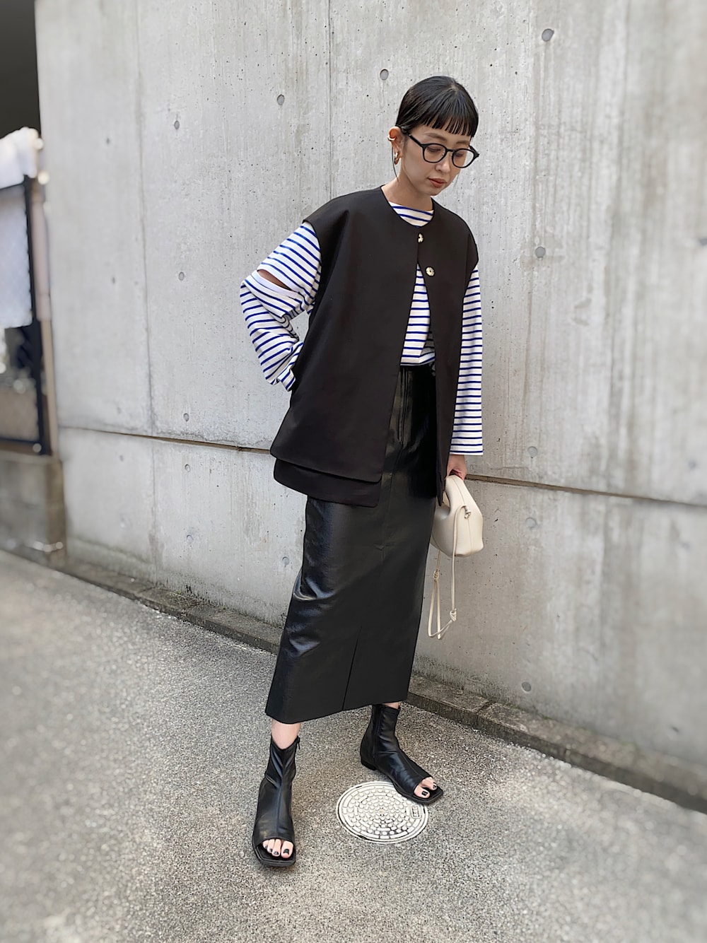 いつかのボーダーteeとジレの レイヤードコーデ😙✨ 見て頂きありがとうございます♪ Instagram 👉mariko____wear